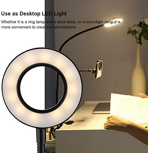 Anneau lumineux portable pour selfie, bras long à 360 °, support de table, lumière d’appoint à LED avec support pour téléphone portable pour diffusion en direct/maquillage/vidéo YouTube/photographie
