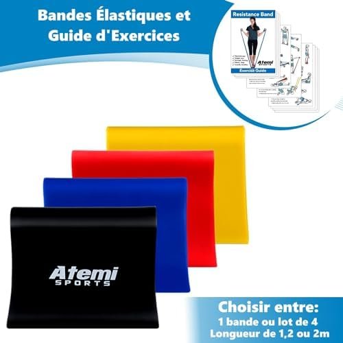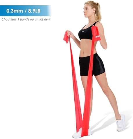 4 NIVEAUX DE RÉSISTANCE – vous pouvez choisir soit 1 bande individuelle, soit un ensemble de 4, et des longueurs de 1,2 m ou 2 m (faites votre sélection sous « Couleur » et « Taille »). Les élastiques sont disponibles en 4 niveaux de résistance : #1 Jaune (3,1kg) #2 Rouge (4,1kg) #3 Bleu (5,2kg) #4 Noir (7,3kg). Un guide de formation est inclus gratuitement