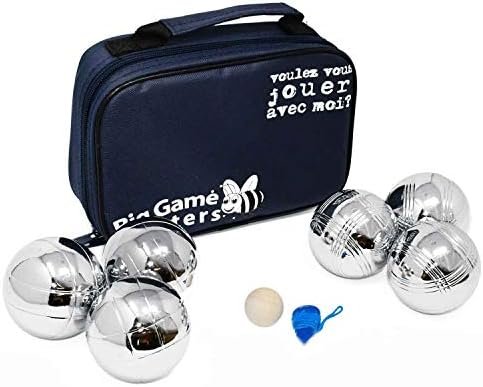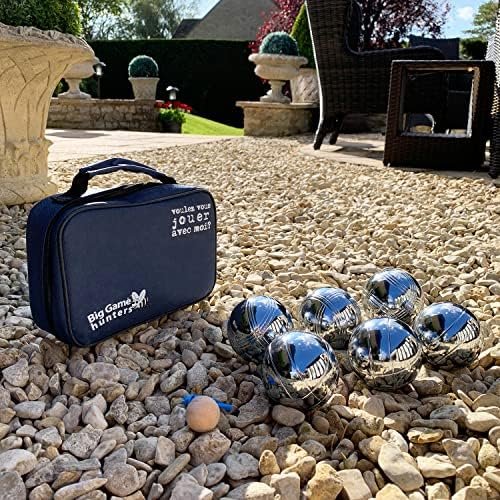 Ce jeu de pétanque Big Game Hunters de se compose de 6 boules de taille et poid officiels avec une finition chromée avec protection antirouille pour plus de durabilité et une qualité supérieure . Gravés de 2 motifs, les joueurs peuvent facilement identifier leurs propres boules et voir qui gagne ! Chaque boule pèse 720 g et mesure 7,3 cm de diamètre. Emballé dans un sac de toile compact, le jeu est facilement portable et les boules ne seront pas perdues. Le but de pétanque est de lancer votre boule en acier aussi près que possible du cric en bois, tout en imposant d’en éloigner les boules de vos adversaires. Le jeu de pétanque est un excellent jeu pour les joueurs de tous âges et de toutes capacités, le moyen idéal de faire sortir toute la famille de l’extérieur.
