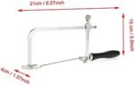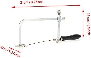 Bijoutier Sawbow Saw Frame : Scie à archet avec une poignée confortable et ergonomique, offrant une bonne sensation de main. L’ensemble d’outils comprend une mini pince sage, un arc de scie et 12 lames de scie. L’arc de scie peut être utilisé pour couper de l’or, de l’argent, du cuivre et d’autres bijoux. Et la profondeur de sciage maximale est d’environ 75 mm. Taille : env. 21 * 15 * 4 cm / 8,27 * 5,9 * 1,57 pouces.