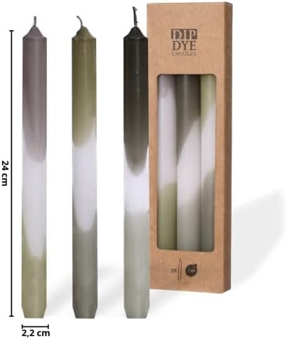 3 bougies colorées – Les bougies à tige trempées attirent tous les regards dans votre maison grâce à des combinaisons de couleurs harmonieuses. Mettez des accents avec des dégradés de couleurs en blanc, vert clair, vert, vert mousse et taupe