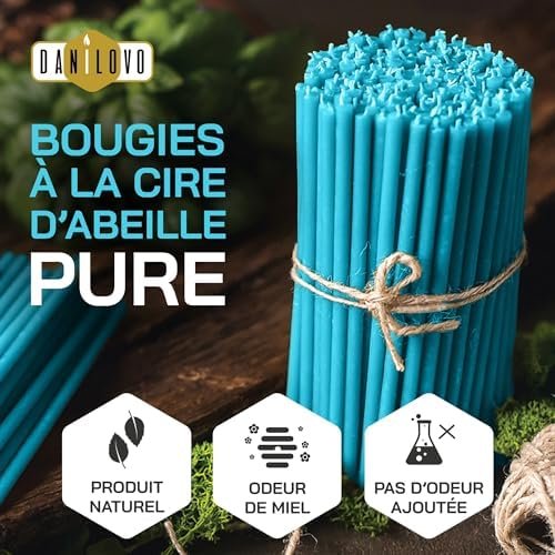 FAIT DE CIRE D’ABEILLE : Choisissez des bougies fabriquées à partir de la circulation d’abeille comme bougies en bâtonnet pour les méditations, les rituels et les occasions romantiques. Les fines bougies Danilovo avec mèche en coton sont fabriquées à partir de la cire d’abeille et non toxique.