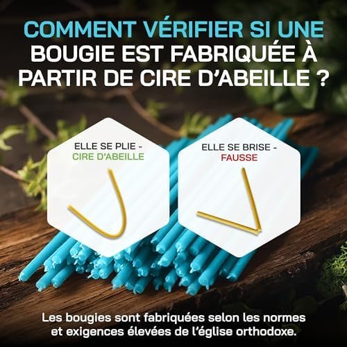 BOUGIES QUALITÉ SUPÉRIEURE : Chaque bougie Danilovo répond aux normes de qualité les plus élevées. Ces bougies en cire d’abeille de 18,5 cm de long et 6,1 mm d’épaisseur brûlent pendant 60 minutes. Parfait pour votre méditation, prière ou rituel religieux et complétera l’autel de votre maison.