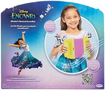 Charme, le long métrage numéro 60 de Walt Disney Animation Studio, raconte l’histoire d’une famille extraordinaire, les Madrigal, qui vivent cachés dans les montagnes de Colombie, dans une maison magique, dans un village animé, dans un endroit merveilleux et enchanté appelé « Charme ». La magie de charme a béni tous les enfants de la famille avec un don unique, de la super force au pouvoir de guérir, tous les enfants sauf un, Mirabel. Mais quand elle découvre que la magie entourant Charme est en danger, Mirabel décide qu’elle, la seule Madrigal ordinaire, pourrait être le dernier espoir de sa famille exceptionnelle. Jouez au rythme de la musique de charme Disney avec l’accordéon musical Mirabel. Avec cet instrument animé, vous pourrez reproduire votre scène préférée dans laquelle Mirabel chante sur les cadeaux magiques de sa famille. Placez vos mains sur les sangles latérales et poussez et tirez pour contracter et étirer le soufflet, comme un vrai accordéon. Appuyez sur les boutons sur les côtés pour simuler que vous jouez la chanson de Mirabel inspirée du Charme, ou créez vos propres mélodies avec le mode de jeu libre. Avec cet accordéon, vous pourrez vivre vos propres aventures musicales, comme Mirabel.