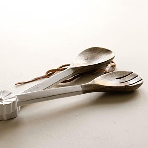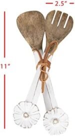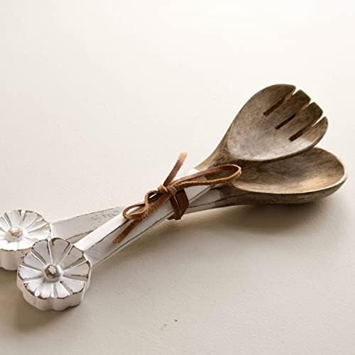 Assemblez un superbe présentoir avec ce lot d’ustensiles de service de Foreside Home & Garden. La fourchette et la cuillère de service de ce lot de deux ont des têtes riches en bois de manguier durable, et des poignées blanchies à la chaux qui sont sculptées dans un beau design fantaisiste avec une délicate fleur à la fin. Le résultat de ce superbe design est un ensemble aussi utile qu’élégant.
