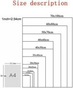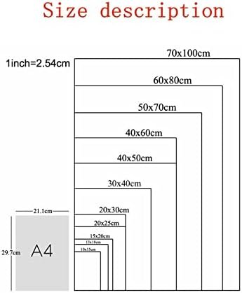 Dimensions : 20 x 30 / 30 x 40 / 40 x 60 / 50 x 70 / 60 x 90 cm (largeur x hauteur). Veuillez choisir la bonne taille avant d’acheter, évitez d’être trop grand ou trop petit. Pas de cadre. (Le lot de posters ne contient pas de cadre, vous pouvez choisir le style de cadre que vous aimez.)