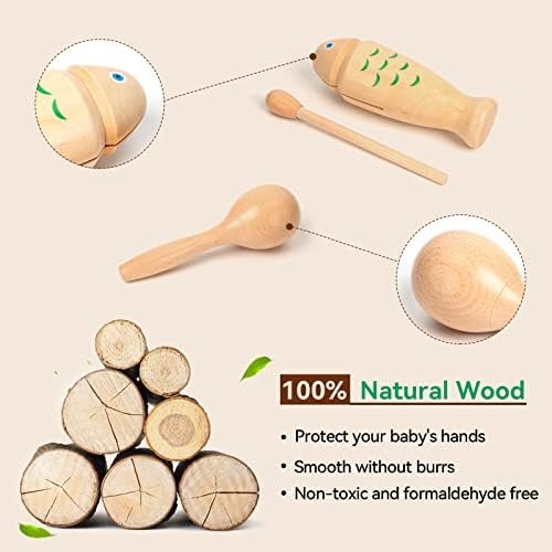 1.Jouet musical en bois sûr pour enfants – Ces instruments de musique pour enfants sont fabriqués en bois naturel, sans peinture ni revêtement, avec des bords lisses et un toucher confortable, sûr et naturel.