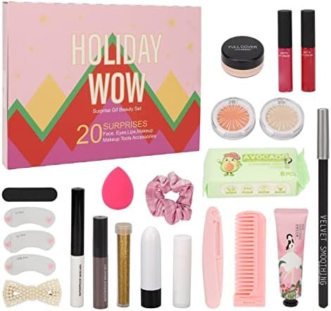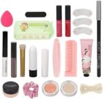 Ensemble complet : comprend un correcteur, un fard à paupières, un fard à joues, un coupe-sourcils, un baume à lèvres, un vernis à lèvres, un rouge à lèvres, un peigne, une épingle à cheveux, du mascara, une crème pour les sourcils, une crème pour les mains, etc.