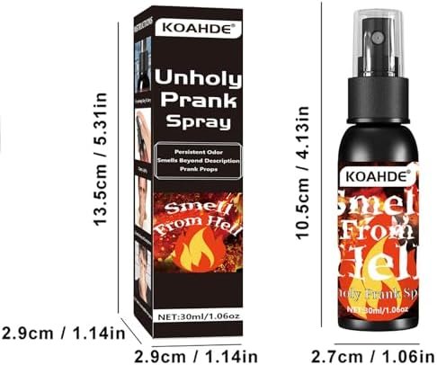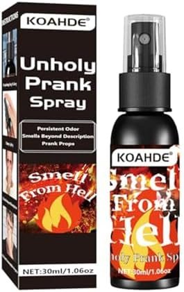 Puissant et efficace Pour la meilleure plaisanterie, vaporisez à l’intérieur pour obtenir la puanteur la plus forte. Parce que Fart Spray est si efficace, vos amis seront époustouflés après un spray ! Spray liquide qui a envoyé le cul puant : ce spray puant pour pet est de faire courir votre victime dans sûr les montagnes. Grosse blague : le spray puant pour pet est la blague parfaite que personne ne peut faire. Très malodorant Veuillez vous enfuir immédiatement après avoir pulvérisé notre spray liquide pour animaux de compagnie. Bien qu’il soit non toxique et inoffensif, il est vraiment nul. Ses ingrédients sont sûrs. Cadeau amusant Si vous avez un ami qui aime faire des blagues, ce serait un cadeau parfait. Contient un spray Fart 1pc 30ml.