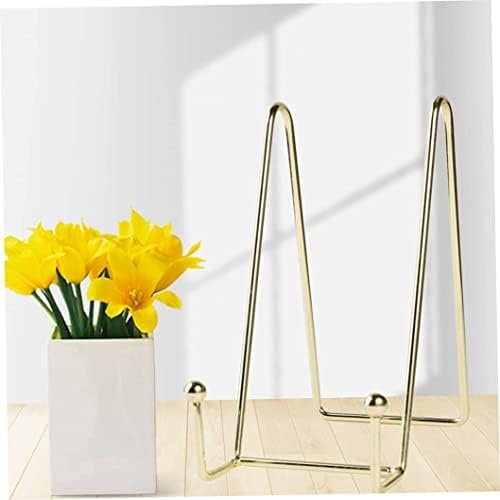 Le présentoir en fer doré est fabriqué en fil de fer. Forme stable et longue durée de vie. Ne se déforme pas facilement, ne doit pas être endommagé, assez solide pour placer des assiettes, des plats, des photos, des images encadrées, des œuvres d’art, des affiches, des livres, etc. La base est conçue avec une tête arrondie pour éviter le placement brillant, le placement des cadres photo, des assiettes et d’autres objets ne sont pas faciles à tomber. maison, bureau, ou librairie, mariage ou salle d’exposition. Empilez vos assiettes, photos ou livres sur ces chevalets de table. L’élégant présentoir incurvé peut ajouter de l’élégance à n’importe quelle pièce. Parfait pour les présentoirs de comptoir, les placards, les manteaux et les tables.