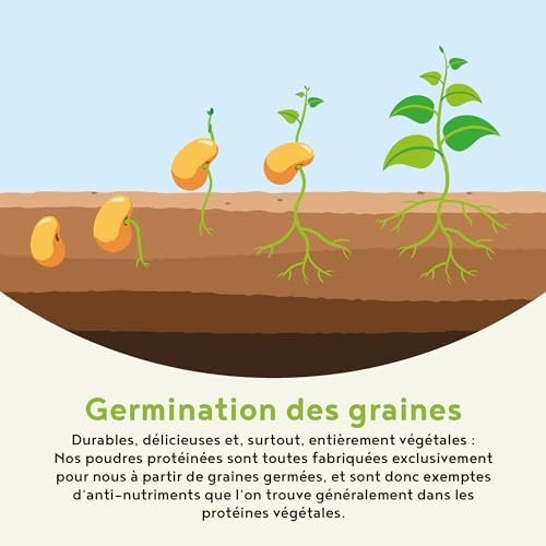 🥣Taux de protéines élevées : Plus de 8 grammes de protéines par portion (30 g) issues de pois jaunes germés, cultivés durablement dans le sud fertile de l’Allemagne.