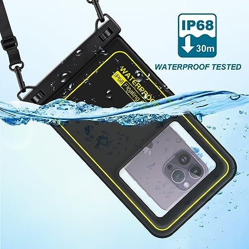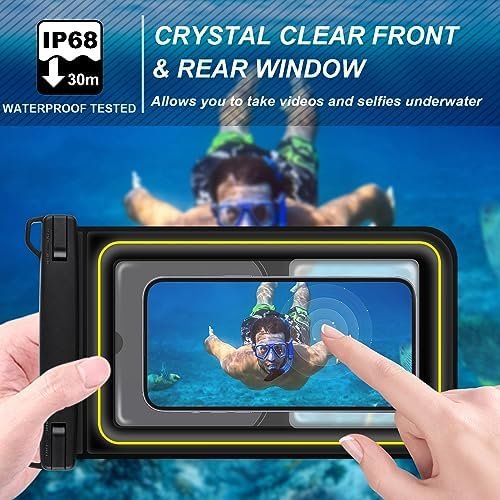 IP68 Pochette Etanche Smartphone – Chaque pochette etanche a été testée sous l’eau à une profondeur de 30 mètres pendant une demi-heure, la pochette téléphone portable protège votre appareil contre l’eau, la neige et la saleté, sans fuite, et maintient la fonction d’écran tactile entièrement sensible.