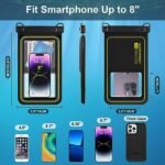 Compatibilité Universelle – La coque etanche est compatible avec les téléphones jusqu’à 8 pouces, comme l’iPhone 15 Pro Max, 15 Plus, 15 Pro, 15, 14 Pro, 14 Pro Max, 14 Plus, 13, 13 Pro, 12, 12 Pro Max, 11, 11 Pro Max, Samsung Galaxy S24 Ultra S23, S22, S21, S20, etc. ★Conseils : Veuillez tester l’imperméabilité avec une serviette en papier avant de l’utiliser.