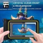 Matériau de Qualité Supérieure – Le matériau de haute qualité le rend durable et solide, facile à déverrouiller l’écran, conception de fenêtre claire à l’avant et à l’arrière pour prendre des photos, visionner des vidéos et vérifier les e-mails gratuitement. Le fonctionnement de l’écran tactile peut être impacté en cas de pression hydraulique sous certaines profondeurs d’eau. La reconnaissance des empreintes digitales n’est pas disponible.