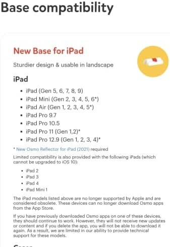 Compatibilité IPAD : Tous les iPad sauf génération 1, 2, 3. iPad Reflector 2021 requis pour : iPad Air 4, iPad Pro 11 pouces et iPad Pro 12,9 pouces. La version iOS minimale requise est iOS 10