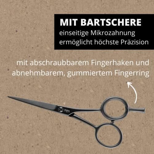 Ciseaux à cheveux et à barbe – Les ciseaux professionnels pour cheveux et barbe avec crochet à doigt dévissable et anneau en caoutchouc amovible permettent une micro-denture unilatérale. Cela empêche les poils de glisser lors du processus de coupe et garantit ainsi une précision maximale.