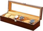 Fait de bois de haute qualité, de verre et de velours bijou. Cet organisateur de montres pour hommes est sophistiqué, magnifique et attrayant. Et il est facile à nettoyer. Tout ce que vous avez à faire est d’essuyer l’organisateur de la vitrine avec un chiffon.