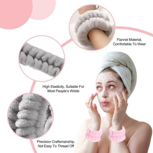 💗【Doux et confortable】Ce bandeaux de poignet de spa est fabriqué en flanelle, qui est un matériau en microfibre. Doux pour la peau et confortable, léger et doux, adapté aux personnes ayant la peau sensible.