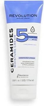 5x Protection & Soins pour votre peau, approuvés par un dermatologue. Adaptée à tous les types de peau et alimentée par 5 céramides, la lotion hydratante Revolution Skincare Ceramides contient de l’acide hyaluronique pour hydrater et nourrir, cocooner et réconforter la peau. 5 raisons pour lesquelles votre peau va l’adorer : – Contient de l’acide hyaluronique super-hydratant pour une hydratation de 24 heures – La lotion hydratante est une formule à texture légère – Convient à tous les types de peau, mais convient mieux aux peaux sèches – Les céramides se marient avec presque tous les autres ingrédients de soins de la peau, de sorte que cette formule peut facilement être insérée dans n’importe quelle routine. – Chaque formule de la gamme est approuvée par un dermatologue. Comment utiliser : Appliquez une petite quantité sur le visage matin et soir. Pour de meilleurs résultats, utilisez en routine avec la gamme de nettoyants Céramides. Que sont les céramides ? Les céramides sont des acides gras à longue chaîne qui représentent environ 50% de la composition de la peau – ils sont essentiels pour construire des structures dans la peau, une colle qui lie la peau ensemble. Lorsque la barrière cutanée vulnérable est endommagée, le teint peut être sec, sujet à l’irritation ou être exposé à une contamination microbienne. Les céramides assurent la protection de la barrière cutanée, l’hydratation et le teint doux et souple. La gamme Ceramides est : – Peta certifié sans cruauté et végétalien – Dermatologue agréé – Sans parfum – Non comédogène – Hypoallergénique