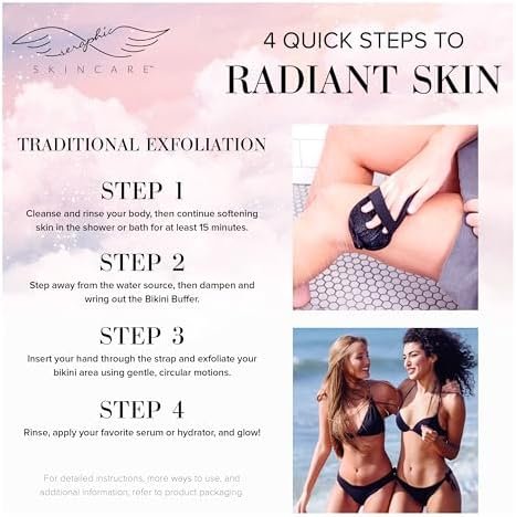 Débarrassez-vous des taches rouges, des poils incarnés et des bosses de rasoir dans la zone de votre bikini après le rasage ou l’épilation à la cire avec le gant exfoliant Seraphic Skincare. Faites l’expérience d’un traitement à la maison pour les poils incarnés et sans produits chimiques. Révélez une peau plus douce et plus éclatante en un rien de temps.