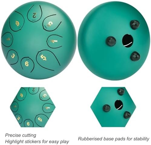 Haute Qualité : Le steel tongue drum est fabriqué en acier au carbone de haute qualité, le tambour est robuste et durable ; la surface joliment peinte avec finition est inoxydable et résistante à la corrosion.