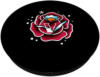 Tatouage traditionnel à la rose lettre V PopSockets Pop…