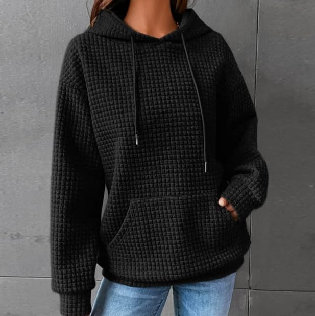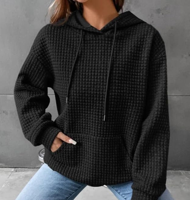 1 * sweat à capuche gaufré décontracté à manches longues pour femmes avec cordon de serrage