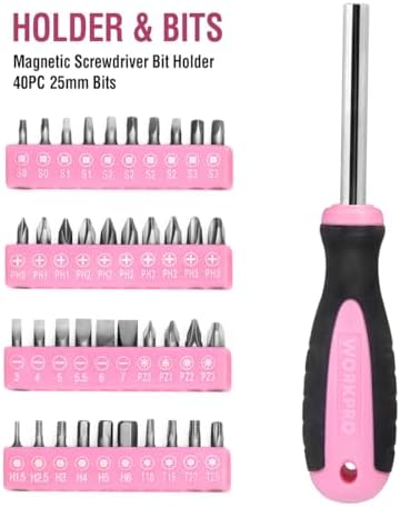 WORKPRO Kit d’Outils 103 Pièces Rose comprend :